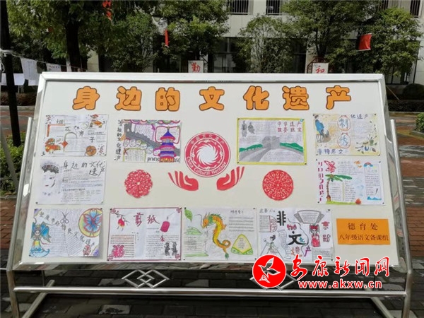 本網訊 為進一步加強我國文化遺產的保護,繼承和弘揚中華民族優秀傳統文化,增強學生的民族自信心和自豪感,豐富校園文化生活,營造濃厚的學習氣氛,充分展示學生風采,培養學生動手創新能力,漢濱初中高新校區德育處協同初二年級語文備課組利用國慶假期舉辦了以“探尋文化遺產,弘揚民族文化”為主題的手抄報活動。10月12日,手抄報展板順利展出。xEu安康新聞網