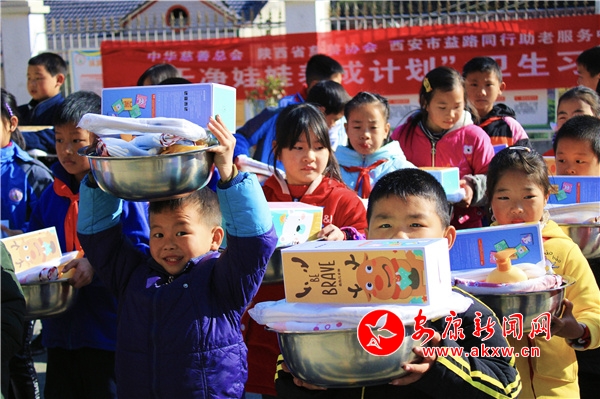 11月25日上午,由中華慈善總會、陜西省慈善協(xié)會發(fā)起,西安市益路同行助老服務(wù)中心和漢濱區(qū)浩睿社會組織服務(wù)中心聯(lián)合執(zhí)行的“干凈娃娃養(yǎng)成計劃”項(xiàng)目在安康市漢濱區(qū)紫荊鎮(zhèn)紫荊小學(xué)、紫荊幼兒園等7所學(xué)校共計發(fā)放680套“衛(wèi)生習(xí)慣養(yǎng)成包”。(吳燁卿 攝)eZk安康新聞網(wǎng)