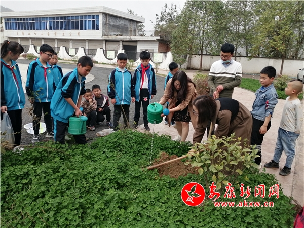 在接下來的植綠活動中,同學們個個都搶著爭當環保小衛士,干勁十足。看小斌同學拿起挖掘把樹坑挖的大大的,魏依晨同學把果樹苗扶的直直的,還有許多同學運水、澆水、培土。在師生共同努力下,校園變得更綠了,更靚了。