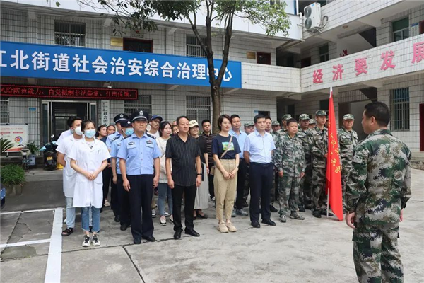 7月23日上午,江北街道防汛防滑應急指揮部收到“汛情”,指揮部各成員單位迅速“集結”趕往劉家溝社區增援。
