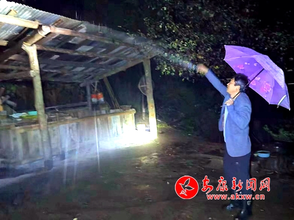 8月29日晚,領導班子帶領干部到包抓的靜寧社區開展“三到戶”工作,檢查住房安全、內澇等安全隱患,核查住戶信息。駐瀛湖鎮桂花村、學坊村、響水溝村、陽坡村的第一書記和駐村干部到地質災害點進行安全排查,入戶查看群眾住房及房前屋后安全情況。
