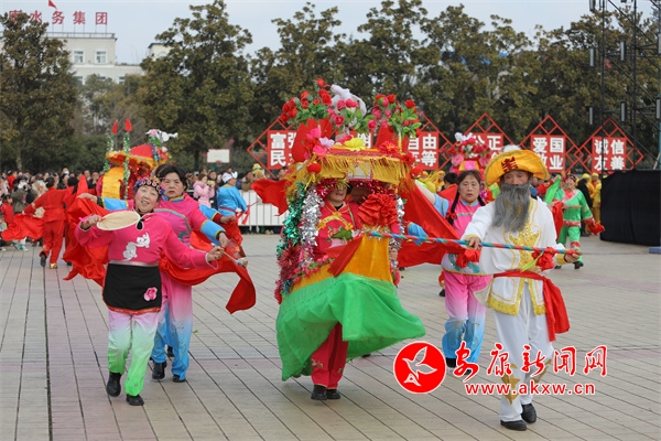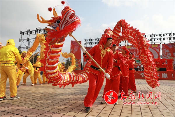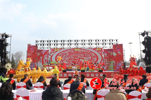 在金州廣場,身著各色演出服裝的演出隊伍早早就來到了現場為表演做準備,隨著一聲鑼鼓敲響,開場舞蹈《盛世歡歌》拉開活動序幕,花鼓表演唱《花為媒》、女聲合唱《火火的中國》、少兒舞蹈《百花舞》、戲曲聯唱《新春納福唱二黃》、漢調二黃歌舞《非遺賀新春》等節目陸續上演,營造起了濃濃的節日氛圍。演員們踏著喜慶的鼓點,和著歡快的節拍舞動起來,現場彩龍飛舞,雄獅翻騰,盡顯傳統民俗文化魅力。市民們大飽眼福,紛紛用鏡頭記錄下了各種精彩瞬間。Khy安康新聞網