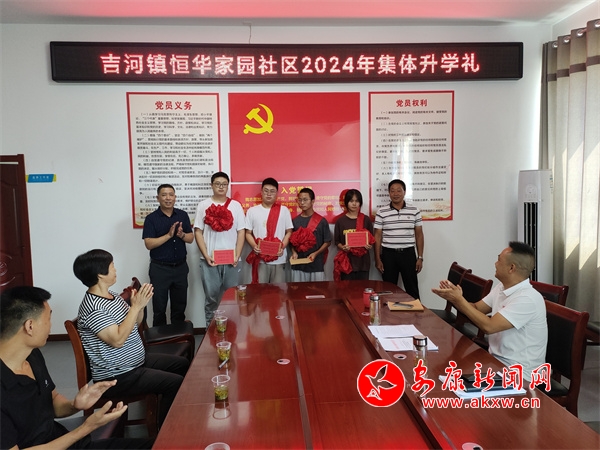 8月16日,漢濱區(qū)吉河鎮(zhèn)恒華家園社區(qū)舉行“弘揚(yáng)新民風(fēng) 拒絕升學(xué)宴”大學(xué)新生集體升學(xué)禮活動(dòng),為4名本科大學(xué)新生發(fā)放了助學(xué)金和紀(jì)念品,并簽訂了“弘揚(yáng)新民風(fēng) 拒絕升學(xué)宴”承諾書(shū),用集體升學(xué)禮代替“升學(xué)宴”,爭(zhēng)做拒絕“升學(xué)宴”的踐行者和推動(dòng)者,營(yíng)造健康文明、勤儉節(jié)約的良好社會(huì)新風(fēng)尚。(圖文/劉化梅) jzp安康新聞網(wǎng)