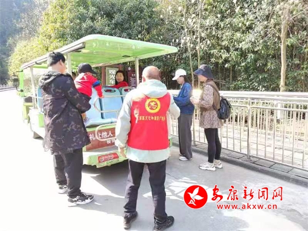 為增強游客的文明旅游意識,近日,漢濱區文旅廣電局組織志愿者們在雙龍景區現場向市民游客發放文明旅游宣傳折頁,宣傳講解文明旅游相關知識以及應當遵循的行為規范,引導游客有序排隊游玩。宣傳彩頁內容既包含了安康的歷史文化、自然風光介紹,也強調了保護環境等文明旅游具體要求,旨在引導每一位游客成為文明旅游的踐行者和傳播者,從自身做起、從小事做起,共展文明風采,共樹文明形象,共享文明旅游好風景。(漢濱區委宣傳部供圖) jNb安康新聞網