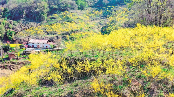 “滿目金黃香百里,一方春色醉千山。”陽春三月,正是百花爭艷之時,漢濱區譚壩鎮前河社區誠鑫現代農業園內,百畝連翹花迎著春風,肆意綻放,構成一幅金色的生態……