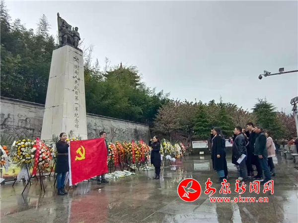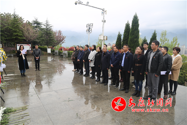 全體黨員干部在陜南抗日第一軍紀念碑前,舉行默哀儀式,敬獻花籃,表達緬懷之情。隨后聆聽革命先烈士的光輝事跡。在鮮紅的黨旗下,全體黨員重溫入黨誓詞。最后,黨員代表發言,告慰先烈英靈。