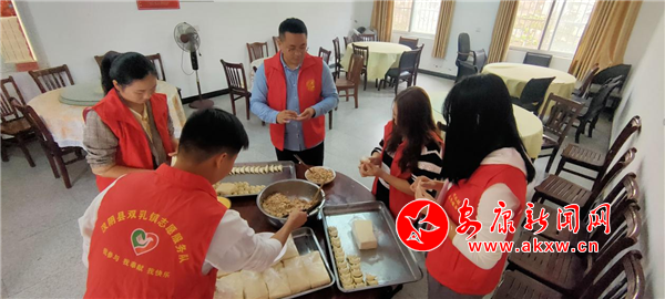 一大早,三同村和玉河村黨支部黨員干部就開始了緊張有序準(zhǔn)備工作,村部廣場上,擺起支起了一口大鍋。切菜剁肉,剁餡包餃子,收拾餐桌......忙得不亦樂乎,鉚足了勁要讓老人過一個難忘的重陽佳節(jié)。對于行動不便和年齡大的老人,身穿紅馬甲的志愿者甚至上門用車把老人們送到村部。