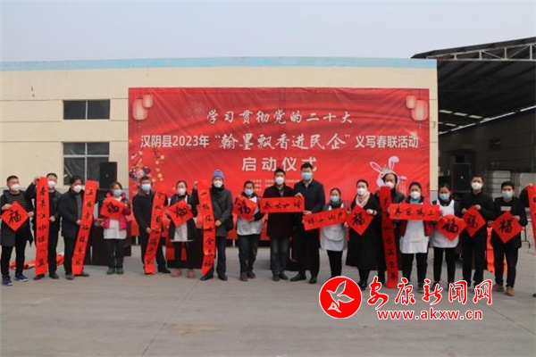 本網(wǎng)訊(通訊員 唐成明)寅虎辭歲萬象新,卯兔迎福報春來。為認(rèn)真學(xué)習(xí)貫徹落實黨的二十大精神,進(jìn)一步弘揚(yáng)傳承中華民族的優(yōu)秀傳統(tǒng)文化,大力營造全縣上下關(guān)心支持民營經(jīng)濟(jì)發(fā)展的濃厚氛圍。1月12日上午,漢陰縣工商聯(lián)聯(lián)合縣文聯(lián)舉行“翰墨飄香進(jìn)民企”義寫春聯(lián)活動啟動儀式。