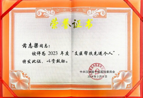 努力終會有回報,由于他的杰出表現(xiàn)和無私奉獻,芮志梁多次獲獎,但他仍舊勤勉認真,時刻把患者放在首位。在支醫(yī)幫扶期間,他獲得了漢陰縣“支醫(yī)幫扶先進個人”等稱號。然而,在他看來,這些榮譽并不重要,重要的是能夠為基層醫(yī)療事業(yè)貢獻自己的力量,為更多的患者帶去健康和希望。幫扶之路雖然艱辛,但芮志梁卻從未退縮。他始終堅守初心、牢記使命,用自己的實際行動詮釋著醫(yī)者仁心的真諦,用自己的辛勤努力和無私奉獻,為漢陰縣中醫(yī)醫(yī)院帶來了翻天覆地的變化。