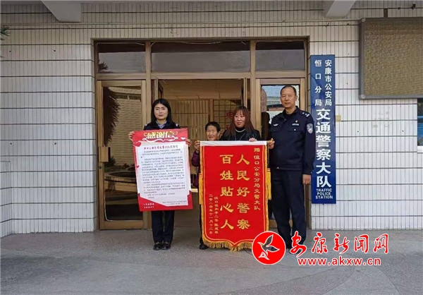 近日,漢濱區牛蹄鎮的居民李某某,手持寫有“百姓貼心人 人民好警察”字樣的錦旗和感謝信來到恒口公安分局交警大隊,對大隊民警深夜幫忙找回走失母親之舉表示誠摯感謝。w7r安康新聞網