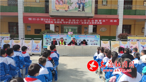 本網(wǎng)訊(通訊員 梁珊珊)3月29日,是我國第26個“全國中小學(xué)生安全教育日”,為切實(shí)增強(qiáng)轄區(qū)中小學(xué)師生的安全防范意識和自我保護(hù)能力,預(yù)防和減少道路交通事故的發(fā)生。29日上午,恒口分局交警大隊(duì)組織民警走進(jìn)轄區(qū)恒口小學(xué),開展交通安全進(jìn)校園宣傳活動,為全校師生送去了一堂生動有趣的交通安全教育講座。