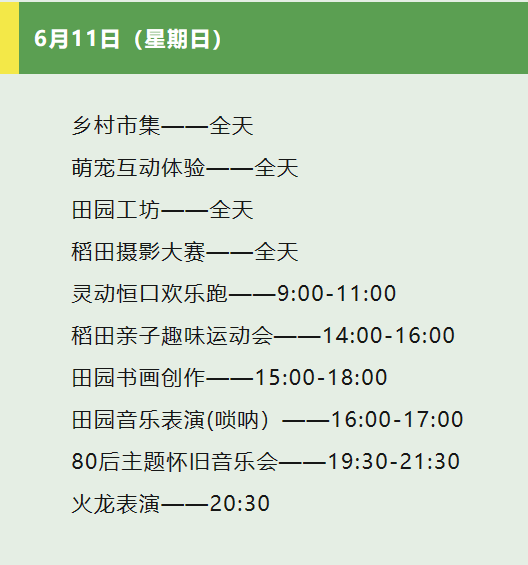 當日,現場還舉辦了稻田拔河、稻田摸魚、稻田摔跤等娛樂活動和田園古箏表演、70后主題懷舊音樂會、火龍表演等演出活動,吸引眾多游客朋友前來打卡。6月11日,靈動恒口歡樂跑、親子趣味運動會、嗩吶音樂表演、80后主題懷音樂會等活動精彩繼續...... L5i安康新聞網
