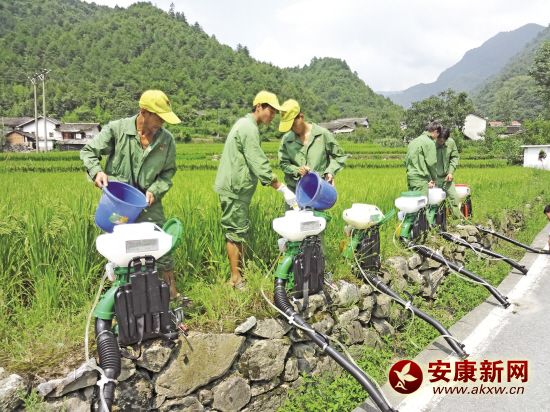 當前正是水稻稻飛虱、稻縱卷葉螟等病蟲害防治的關鍵時期。8月10日,在寧陜縣城關鎮青龍村董家壩,專業化防治隊員背著機動噴霧器,一字排開地進行水稻后期病蟲害防……