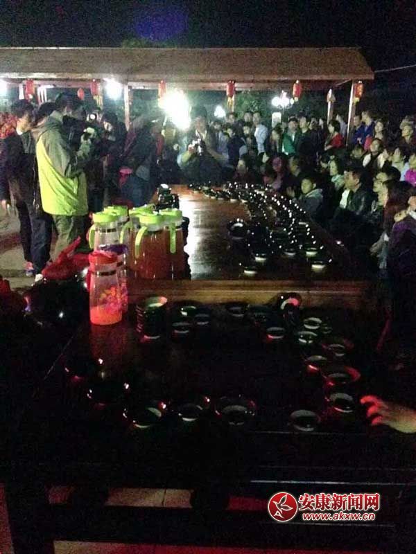來自西安、安康、漢中、重慶城口等地的客人,分座幾個吊腳樓,圍著八仙桌,一邊欣賞著四面竹木墻上掛著的蓑衣、斗笠、紅辣椒串、玉米棒子等物件,一邊交流著巴山地區的特色物產、民俗風情。在主人的熱情招呼下,不一會兒功夫,客人們面前已經擺上了一摞摞“巴人酒具”土窯碗,盛裝著各色“巴人美食”的陶碗、陶缽、陶盤、吊罐也陸續端了上來。