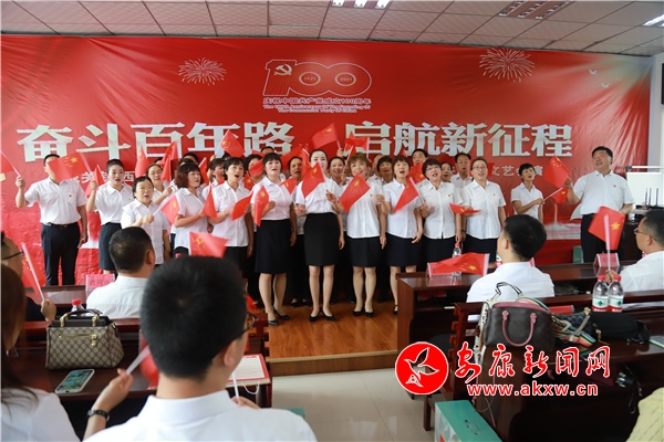 慶祝活動最后,全場黨員和群眾揮動手中的五星紅旗,一起合唱《我和我的祖國》表達了對偉大祖國的無限熱愛之情,活動在歡快的音樂節奏中結束。