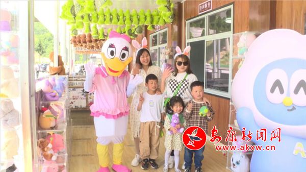 “五一”小長假來臨,嵐皋高速公路出口游客服務工作站面貌一改往日嚴肅簡約的風格,圍繞“毛絨玩具+文旅”這一主題,不僅設置了“網紅”毛絨玩具拍照打卡墻和毛絨玩具裝飾的通道,更有戴上卡通發箍、穿上玩偶服飾的志愿者們為前來咨詢的游客提供貼心服務。