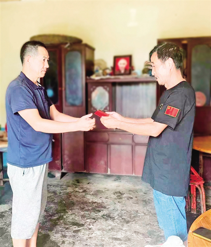 7月11日,嵐皋縣藺河鎮(zhèn)蔣家關(guān)村黨支部副書記李輝友接過嵐皋縣電信分公司職工徐加國遞過來的紅色信封,信封上“徐開遠(yuǎn)最后一次黨費(fèi)”特別引人矚目。原來,這是已故的92歲抗美援朝老兵徐開遠(yuǎn)向黨組織交納的100元黨費(fèi),專程來送交這筆特殊黨費(fèi)的是他的兒子徐加國。