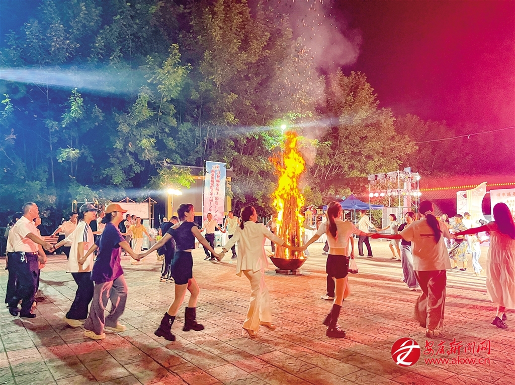 嘉賓與游客圍聚在篝火旁載歌載舞X7Q安康新聞網