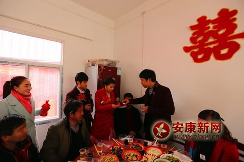 喜宴結束后,記者和新郎的交談中得知,25歲的武道勝是一名汽車修理工,別看年紀不大,卻是一名修車的老師傅了,一個月4000多元的工資,在寧陜當地算的上是中上水平。談到他和黃靜是如何相戀時,內向的小武,顯得更加羞澀。到是黃靜打開了她的話匣子,“我們是通過媒人介紹走到一起的,兩家相隔也不遠,他經常帶我一起去看家門前小河邊覓食的朱鹮!還給我說朱鹮是最忠貞的鳥,一輩子只有一個配偶。他想我們倆的愛情像朱鹮一樣完美!”“我聽朱鹮站的李站長說的!”武道勝在旁邊不好意思的撓著頭說道。