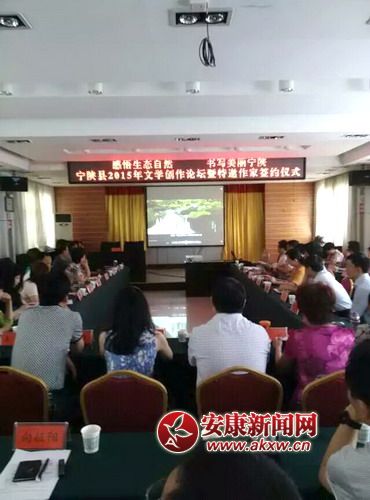 安康新聞網訊 (通訊員 宋顯云 唐紀創) 7月30至31日,“感悟生態自然,書寫美麗寧陜”寧陜縣2015年文學作家創作論壇暨特邀作家簽約儀式,在寧陜縣縣委會議室舉行。省作協副主席、市作協主席張虹,著名作家商子雍、陳長吟、楊常軍、蔣典軍、王曉渭、王妹英、王曉云、周養俊、姜華等14名省市作家,與本縣10名作家,齊聚一堂,開展文學交流活動。fiZ安康新聞網