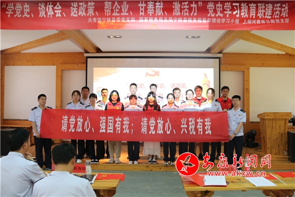 誦讀紅色經(jīng)典、感懷崢嶸歲月、聆聽革命故事、汲取榜樣精神、開展志愿服務、弘揚時代新風……7月22日,一場以“談體會 送政策 幫企業(yè) 甘奉獻 激活力”為主題的聯(lián)建活動在寧陜縣上壩河國家森林公園拉開帷幕,讓來自共青團寧陜縣委、寧陜縣稅務局及寧陜縣華鑫上壩河旅游有限公司的近40名黨員及青年干部接受了一場鮮活而生動的黨史學習教育。