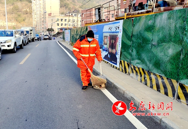 本網訊(通訊員 王輝)1月21日(除夕)早上8時許,空氣中依舊彌漫著寒冷的氣息。筆者在陜西省寧陜縣城區川流的行人和車輛旁看到,環衛夫妻檔方明貴和李金蘭正一前一后沿途清掃路邊散落的紙屑。