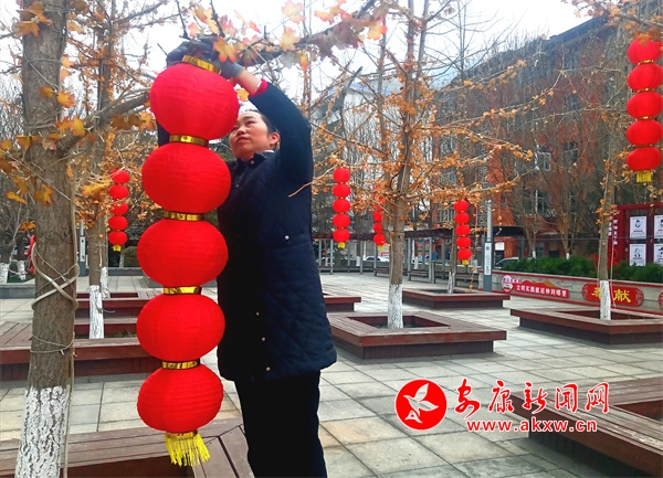 “我們主要負責公園廣場、迎賓大道等區域的亮化裝點工作,需要在行道樹上懸掛大紅燈籠和裝飾彩燈,現場有5名工人正在進行亮化作業,確保可以如期完成亮化工作。”在寧陜縣城關鎮迎賓大道路段現場負責人一邊指導工人掛燈,一邊介紹說。