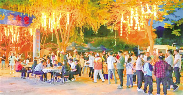 活動(dòng)現(xiàn)場,本土樂隊(duì)、游客與特邀嘉賓輪番登臺,民謠、搖滾、電子樂交織回蕩。游客們圍著篝火載歌載舞,火光映紅張張笑臉,F(xiàn)場設(shè)置的文創(chuàng)產(chǎn)品和小龍蝦、燒烤等特色美食攤位更是滿足了游客的多重體驗(yàn)。