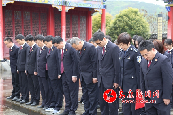 細雨紛紛,在莊嚴凝重的氛圍中,全體干警懷著無比崇敬的心情,來到烈士紀念碑前,鄭重地向為保衛、解放平利獻出寶貴生命的革命先烈敬獻花籃、肅立默哀。