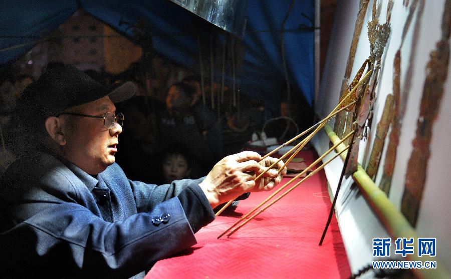 3月15日,平利縣國家非遺文化傳承人吳承權在縣城中心廣場為群眾表演弦子腔。新華社記者 陶明 攝