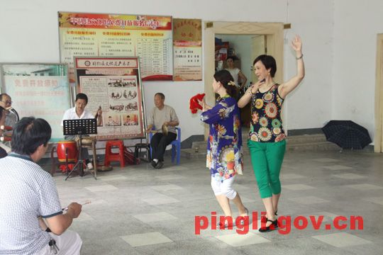 7月1日清晨,平利縣紅旗劇團不時傳來陣陣悠揚的樂曲聲,平利縣舞蹈協會組織舞蹈愛好者正在排練《茶香平利》、《火紅的燈籠火紅的年》以及《相約龍頭村》等舞蹈曲……