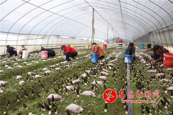 3月7日,遠近聞名的“菌菇娘”李萍帶著群眾正在大棚里忙著采收羊肚菌。今年是李萍家采摘收獲羊肚菌的第五個年頭了,目前羊肚菌已經發展大棚種植面積10余畝。“一斤鮮菌,當前能賣到100元左右。大約七到八斤鮮菌能晾曬烘干成一斤干貨。”李萍一邊采收,一邊介紹說:“羊肚菌是高端食用菌,不僅細嫩鮮美,還富含蛋白質、維生素、氨基酸等20多種營養元素,加上我們這邊地處富硒帶,種出來的很受消費者青睞。”