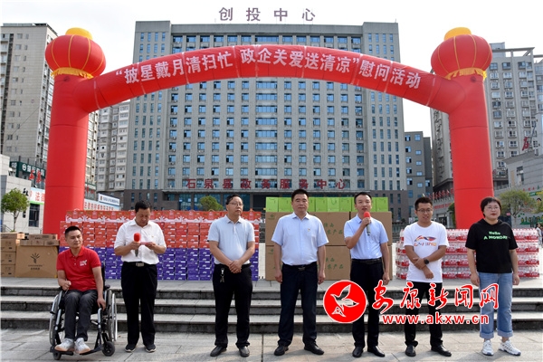 活動儀式上,縣創建辦會同石泉縣茗泉商貿有限公司等3家愛心企業,向高溫天氣里依然堅守工作崗位的環衛職工致以衷心的感謝和崇高的敬意,分別贈送茶葉、飲料、礦泉水、毛巾等防暑降溫物品,共計價值人民幣22000元,惠及165名環衛職工,充分體現了黨和政府及社會各界對環衛職工的關心關愛。