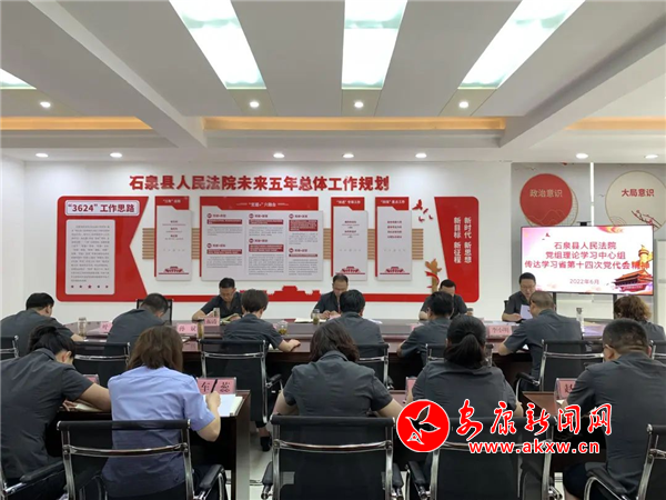 會議要求,要學深悟透抓好宣傳,結合學習貫徹習近平總書記來陜考察重要講話重要指示精神、黨的十九屆六中全會精神,把學習好、宣傳好、貫徹好省第十四次黨代會精神作為當前和今后一個時期的重要任務,掀起班子成員帶頭學、中層干部主動學、全體干警自覺學的學習熱潮。要學用結合謀好發展,認真對照省黨代會作出的重大部署,結合法院工作實際,完善工作思路,細化工作舉措,找準切入點、瞄準突破口,對標對表縣第十六次黨代會和縣委十六屆二次全會重點任務,推動省黨代會精神在石泉法院落地落實。要學有所行樹立形象,以此次黨代會精神為指引,持續強化紀律作風建設,以“為群眾辦實事示范法院”、“楓橋式人民法庭”創建活動為契機,不斷提升人民群眾司法獲得感和滿意度,以優異成績迎接黨的二十大勝利召開。 Wuj安康新聞網