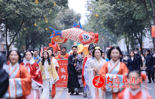“媽媽,那個大魚燈太漂亮了!”暖春已至,年味仍在,一盞造型栩栩如生的手工非遺魚燈在石泉縣老街的人流中閃現,魚燈通體透亮,色彩鮮艷,引得群眾紛紛駐足觀看。