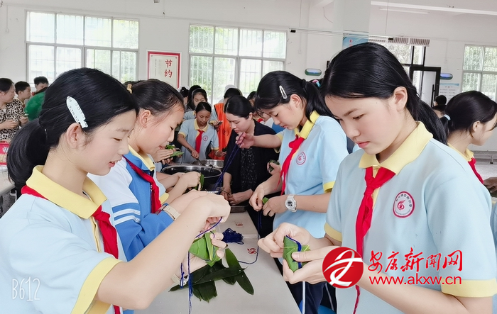 活動(dòng)現(xiàn)場(chǎng),老師與家長(zhǎng)手把手向?qū)W生傳授包粽技巧,從粽葉的折疊角度、糯米的填充分量,到捆扎成形的精細(xì)手法,學(xué)生們圍坐桌前專注練習(xí)。折葉、填米、捆扎……轉(zhuǎn)眼間一個(gè)棱角分明的粽子便成型,現(xiàn)場(chǎng)粽葉翻飛、笑語(yǔ)不斷。活動(dòng)中,老師們還穿插講解端午習(xí)俗,當(dāng)熱氣騰騰的粽子出鍋時(shí),孩子們捧著軟糯香甜的粽子細(xì)細(xì)品嘗,在味蕾的享受中感悟傳統(tǒng)文化的深厚底蘊(yùn)。