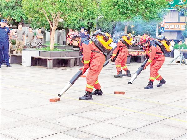 完成后,隊員迅速背負風力滅火機,將起點處的紅磚吹過10米終點處。風力滅火機呼嘯作響,隊員們需精準控制風力方向和強度,這模擬的是實戰中清理障礙物、開辟隔離帶的場景。3i4安康新聞網