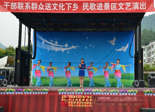8月24日,由石泉縣文化文物廣電局主辦的“送文化下鄉,民歌進景區”活動走進旅游重鎮熨斗鎮,為當地廣大群眾及外地游客送去了一臺豐富的文化大餐;顒釉陟俣锋傁取