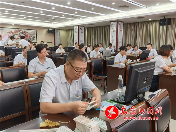 據了解,此次比賽設置了翻打百張傳票、字符錄入和手工點鈔、業務知識競賽四個項目。在翻打百張傳票和漢字錄入環節,選手們靈巧的雙手在計算器和鍵盤上游走,伴隨著“噼里啪啦”敲擊聲,只見一個個數字答案輸入考試系統,一行行字符在電腦屏幕上快速跳動。在點鈔比賽中,選手們單指單張、多指多張等多種點鈔手法各顯風采,清點、墩齊、扎把、蓋章,每個步驟都環環相扣,一絲不茍,嫻熟的手法讓人目不暇接,印象深刻。Gg2安康新聞網
