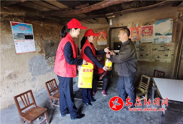 一次關愛留守老人活動。組織女員工進村入戶看望留守老人,為留守老人送去米、油等生活物品,與留守老人面對面談心,叮囑老人注意身體,并記錄了老人需要的幫助,宣講時政要聞、金融知識,提醒他們預防電信詐騙、如何識別假幣等,以實際行動表達對留守老人的關愛之情,倡導社會關注、關愛、尊敬老人,伸出溫暖的手,傳播正能量。