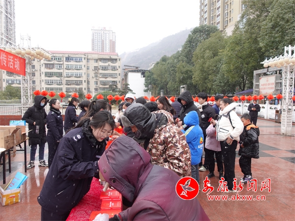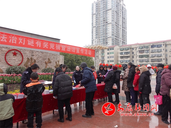 本網(wǎng)訊(通訊員 馮媛 黃倩)“飛雪連天迎春到,法治燈謎鬧元宵 。”2月23日上午,旬陽(yáng)市祝爾慷廣場(chǎng),雖大雪紛飛、天寒地凍,但人頭攢動(dòng)、熱鬧非凡。走近一看,原來(lái)這里正在舉辦旬陽(yáng)市2024年元宵節(jié)法治燈謎有獎(jiǎng)競(jìng)猜暨法治宣傳活動(dòng)。