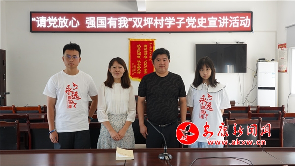 本網訊(通訊員 毛潤 成軍)烈日炎炎的七月,走進紫陽縣城關鎮雙坪村,片片茶園在陽光的映照下,顯得格外翠綠。幾名準大學生手拿文稿走進該村廣播室,對著話筒聲情并茂的播報。原來,他們利用中午休憩的空檔時間開展黨史學習教育宣講活動。
