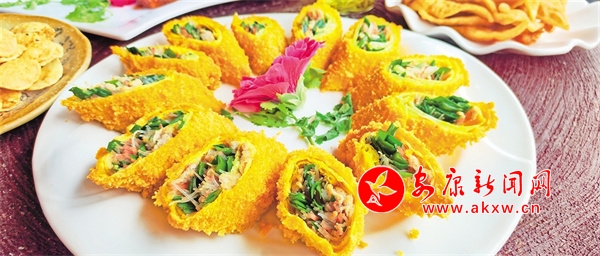 采風(fēng)團(tuán)的第一站,來到了蒿坪鎮(zhèn)雙星社區(qū)的聚福山莊,雙星社區(qū)是“十二五”期間建設(shè)的移民搬遷社區(qū),因為人口聚集,村民王益軍在“十三五”期間搶抓蒿坪鎮(zhèn)發(fā)展農(nóng)旅產(chǎn)業(yè)的機(jī)遇,開辦了聚福山莊農(nóng)家樂。通過當(dāng)?shù)卣哿Υ蛟?ldquo;紫陽味道”品牌,聚福山莊開發(fā)出一系列具有當(dāng)?shù)靥厣拿朗承〕裕眉央攘糇】腿说哪_步與味蕾。“香酥羊肉餅、炸響鈴、蒸米蒿饃、農(nóng)家香酥里脊卷、油渣餅都是我們這的特色,原材料土生土長、綠色健康,客人吃了都說好。”在大廚汪顯峰簡單直白的介紹下,一行人食指大動,用親身體驗言表出真實感受。“這個蒸米蒿饃很有特色,小時候物資匱乏,只好用面粉拌著山上長的米蒿用來蒸饃吃,現(xiàn)在生活好了,再吃蒿子饃真是別有一番風(fēng)味,希望當(dāng)?shù)卣苤r(nóng)民、農(nóng)企深挖本土資源特色,將小風(fēng)味打造成大產(chǎn)業(yè)。”作家、書法家蔣典軍看到眼前的小吃,發(fā)出了滿心感慨。