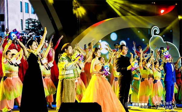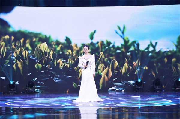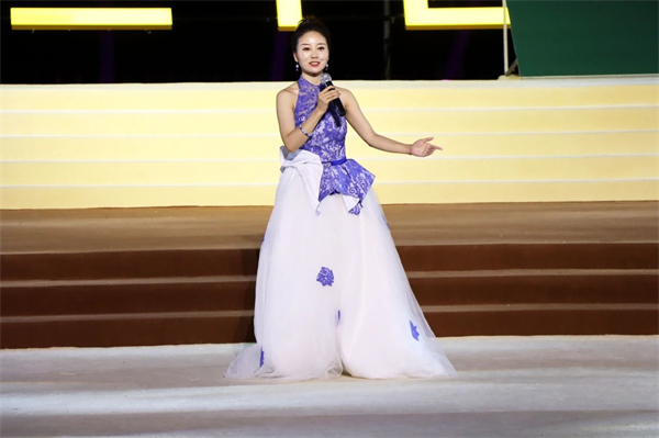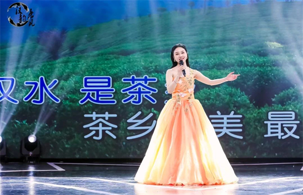 夏梅子在“漢江畫廊 茶歌紫陽”紫陽文旅專場推介活動上唱響《唱一曲茶歌走四方》