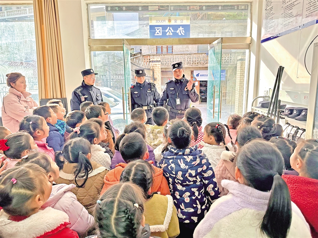1月8日,紫陽縣公安局高橋派出所舉行“萌娃進警營 警心伴童心”主題110宣傳日警營開放活動,邀請轄區學校師生走進警營,感受警營文化。陳益謙 攝