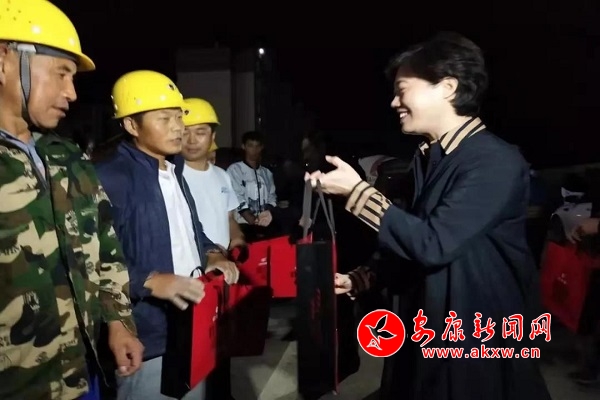 在深夜的施工現(xiàn)場,郭青向工人和基層干部送上了月餅等慰問品,對他們在中秋佳節(jié)期間依然堅(jiān)守工作崗位的敬業(yè)精神和舍小家顧大家的奉獻(xiàn)精神表示崇高敬意,叮囑大家一定要注意身體健康和夜間施工安全。