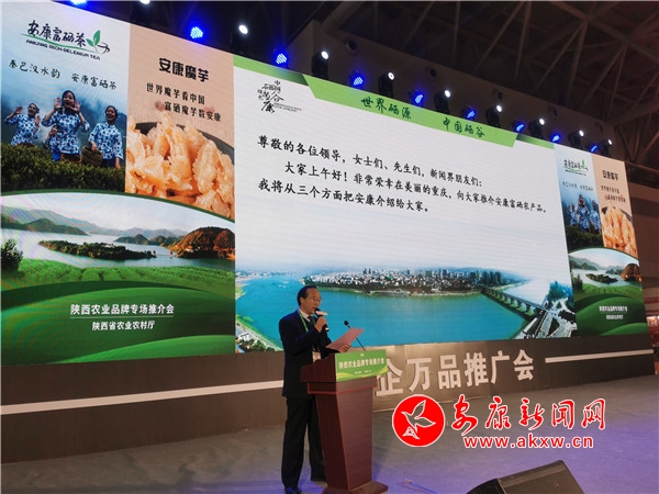 魯琦在陜西農業品牌專場推介會上為安康富硒茶、魔芋代言
