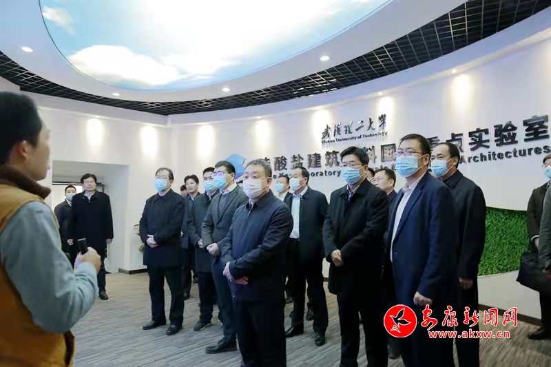 武文罡一行在武漢理工大學硅酸鹽建筑材料國家重點實驗室參觀考察