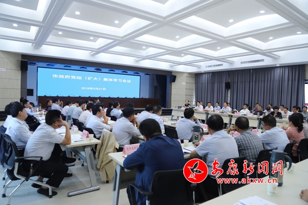 安康新聞網訊(記者 吳單)9月21日下午,市政府黨組書記、市長趙俊民主持召開市政府黨組(擴大)學習會議,組織學習習近平總書記關于黃群等3名同志壯烈犧牲、青少年視力健康、廖俊波同志先進事跡重要指示精神;全國組織工作會議、全國宣傳思想工作會議、全國教育大會、中央全面依法治國委員會第一次會議、推進“一帶一路”建設工作5周年座談會、國務院西部地區開發領導小組會議、省政府第十一次常務會議主要精神;《中國共產黨紀律處分條例》《防范和懲治統計造假、弄虛作假督察工作規定》《陜西省人民政府起草地方性法規草案制定政府規章程序規定》《安康市關于嚴禁領導干部違規插手干預工程項目招投標和政府采購工作規定》等文件;傳達了防范化解地方政府隱性債務風險有關文件精神。irX安康新聞網