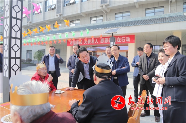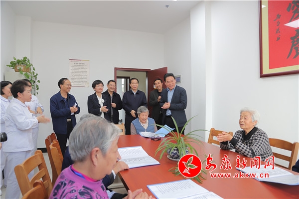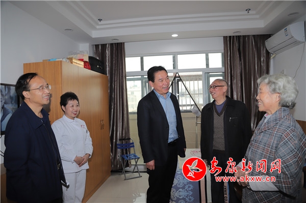 漢濱區陽光護理院,秋日和煦、窗明幾凈,五彩繽紛的小風車隨風輕動,一派安逸恬靜的幸福景象。趙俊民拉著老人們的手親切詢問:“老人家,身體好健旺啊!住在這里感覺怎么樣?”老人連聲稱道:“好哇,好哇!吃得好,住得好,環境好,還有一幫老伙伴,大家都很開心!”看到老人們紅光滿面、精神矍鑠,趙俊民對護理院的工作予以充分肯定,要求大家要做到愛心、細心、耐心,努力為老人們營造更好的生活環境。WPi安康新聞網